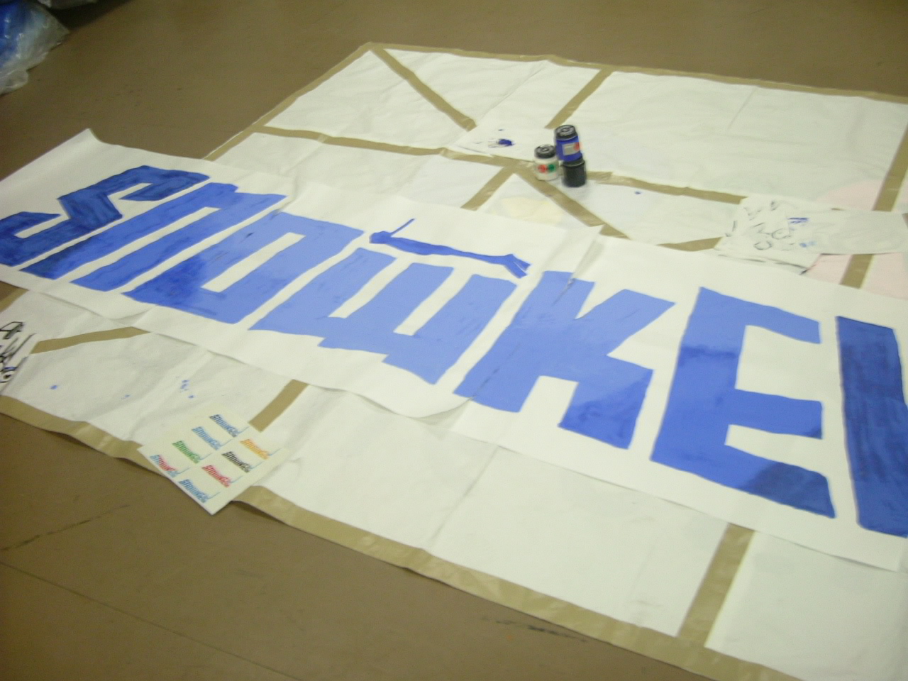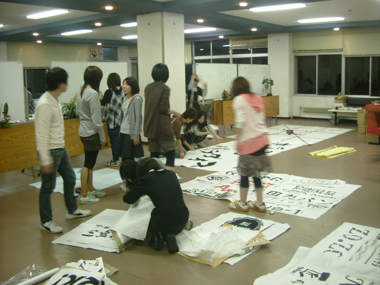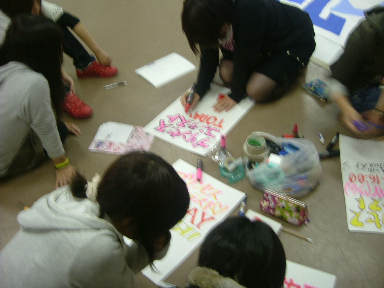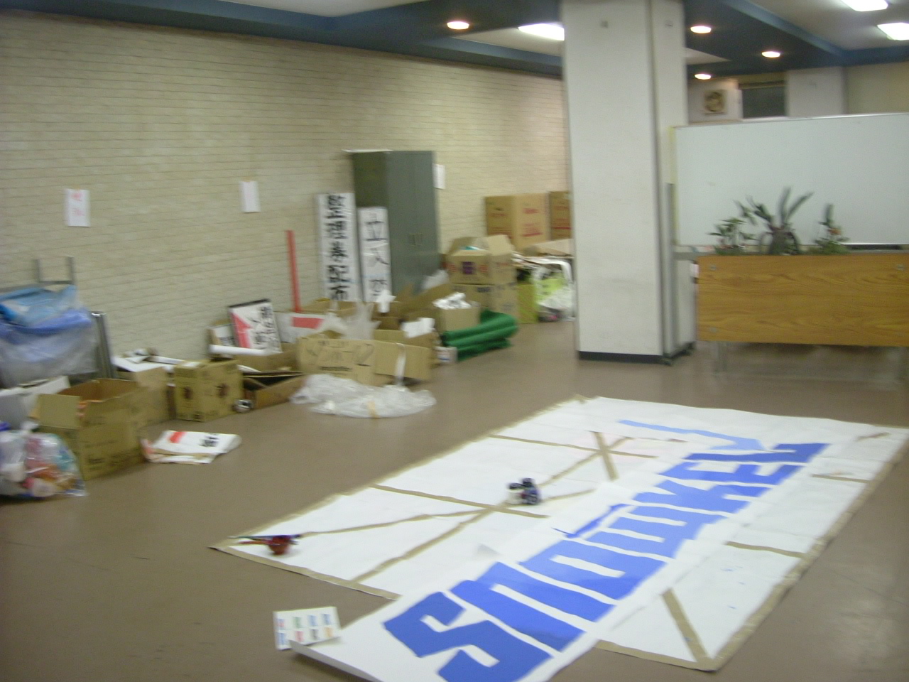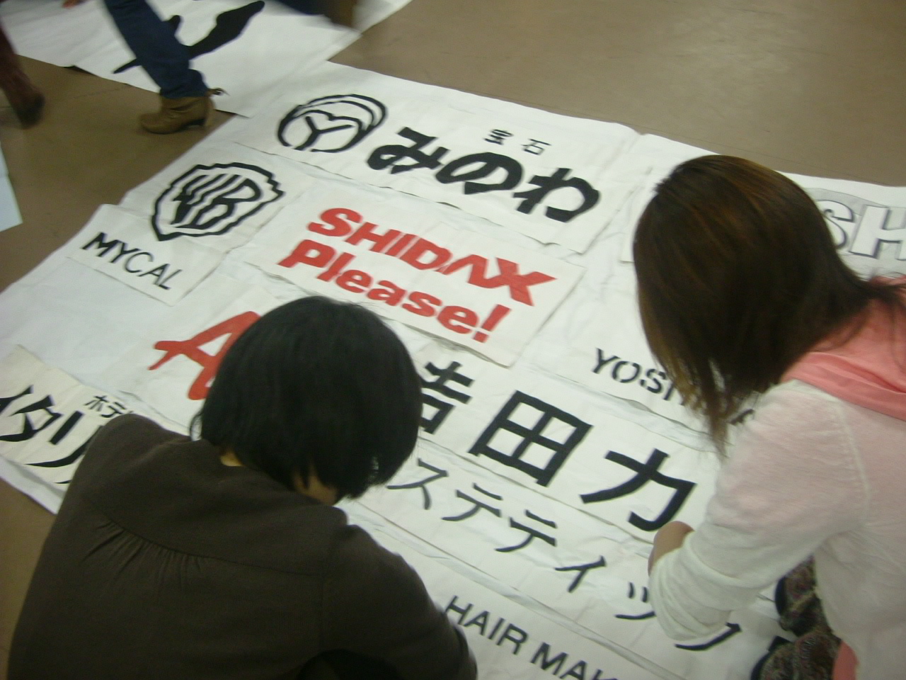 今日の会館は床いっぱいに「ロゴ」がひしめき合っていました。
